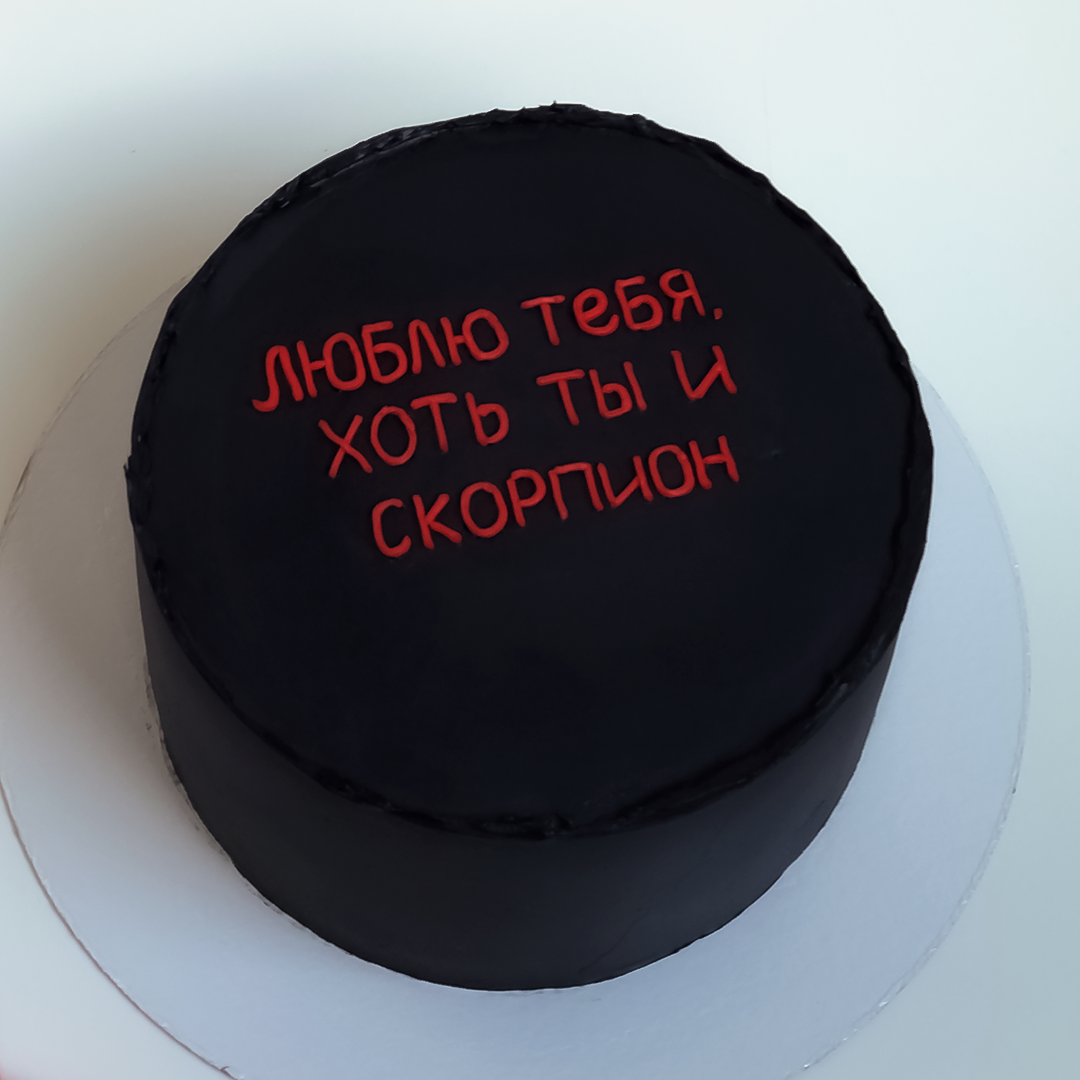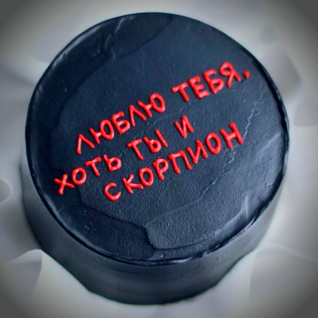 Бенто торт "Скорпион" - брутальный чёрный торт с надписью.