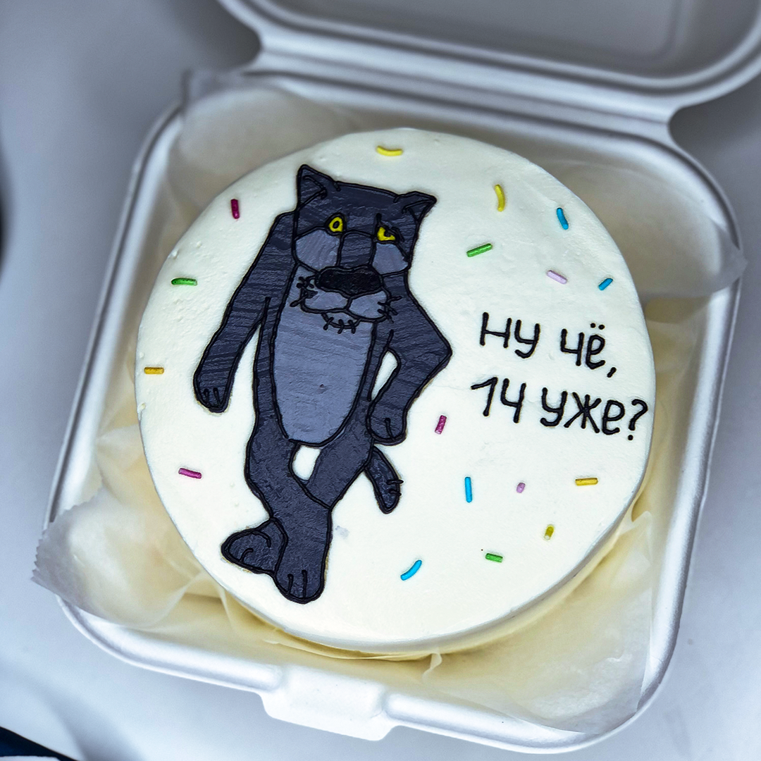 Бенто торт "Ну чё..." с волком. Праздничный бенто тортик на день рождения и любое другое знаменательное событие.